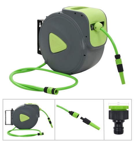 Dieser automatische und stabile schlauchaufroller verfügt über einen grünen pvc schlauch mit einem durchmesser von 12,5mm und einer länge von 20 metern. Er ist tragbar und mit einem.